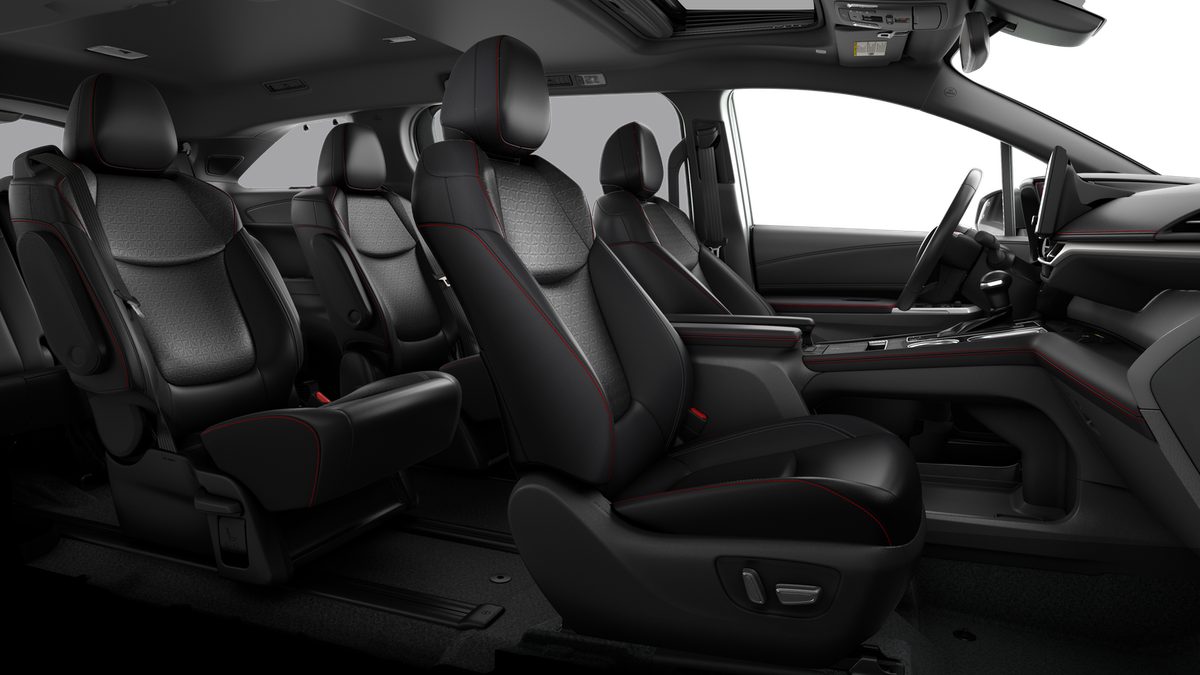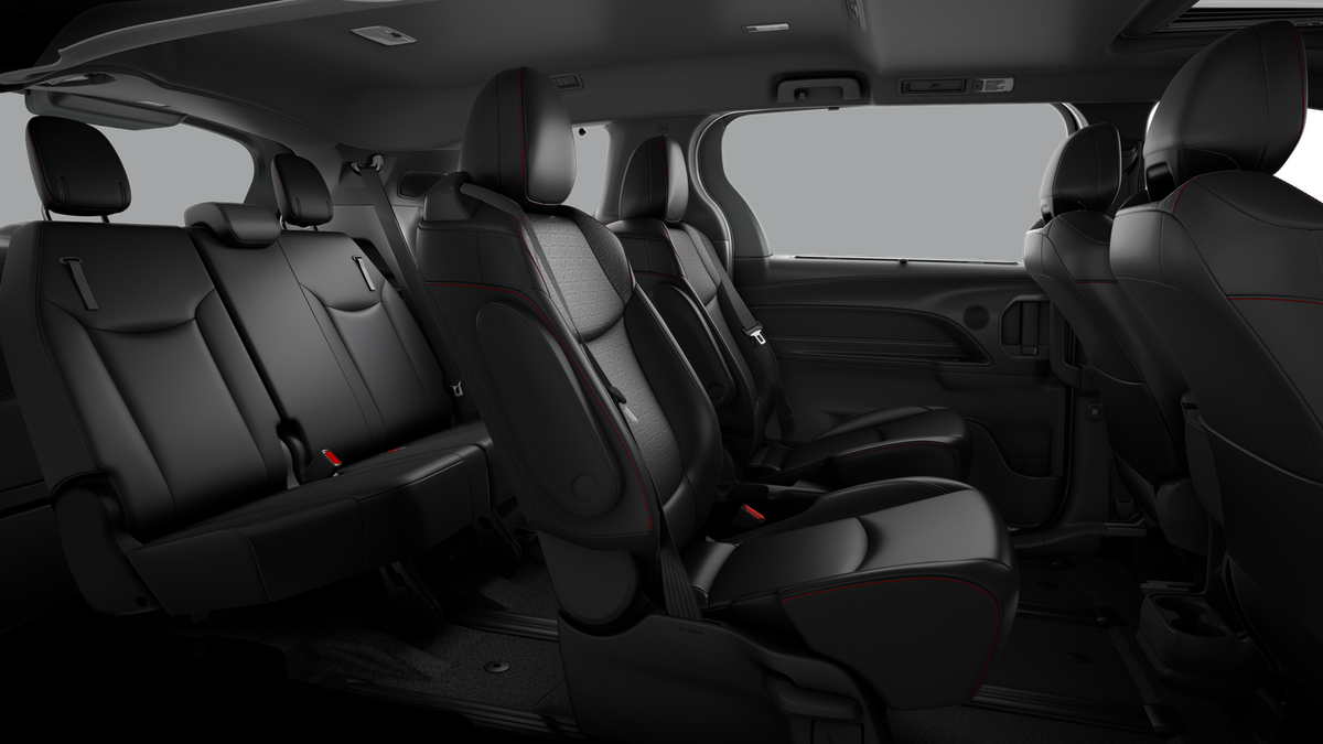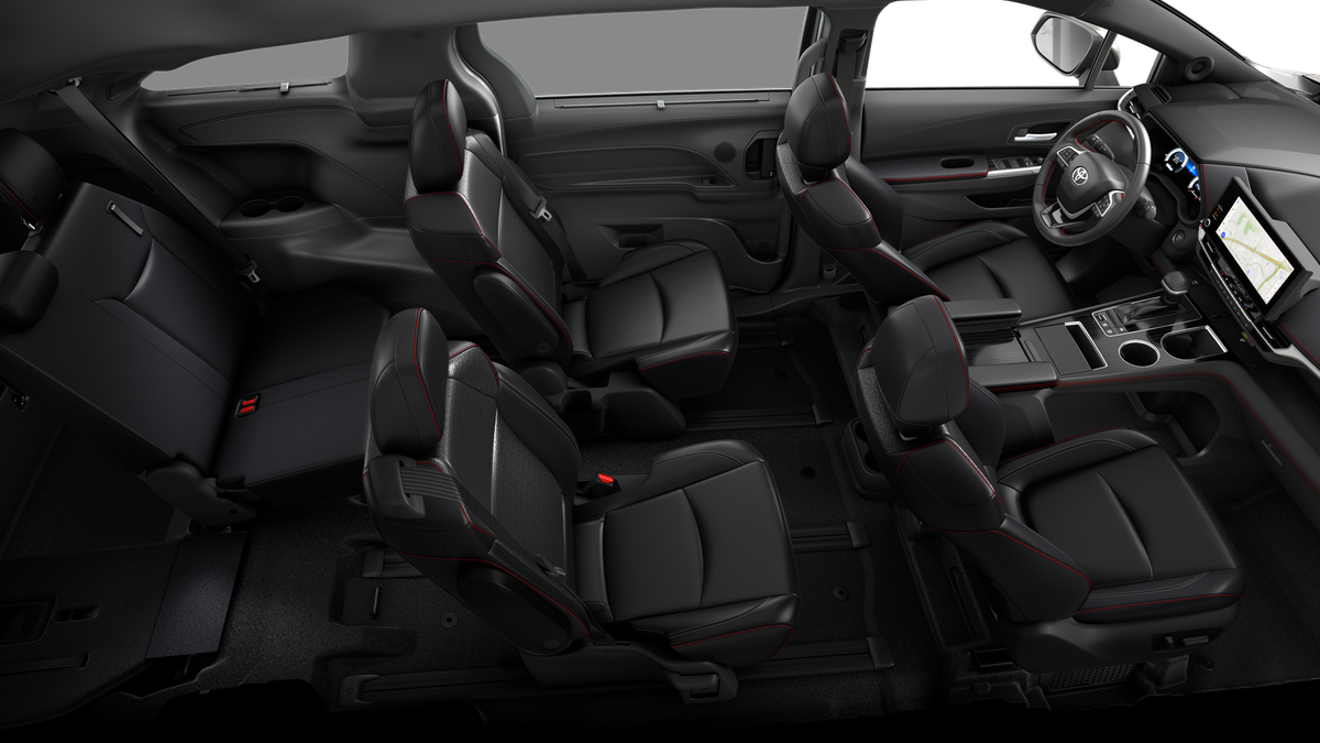 - Fixed center console, pass-through, illuminated storage compartment, and four cup holders
