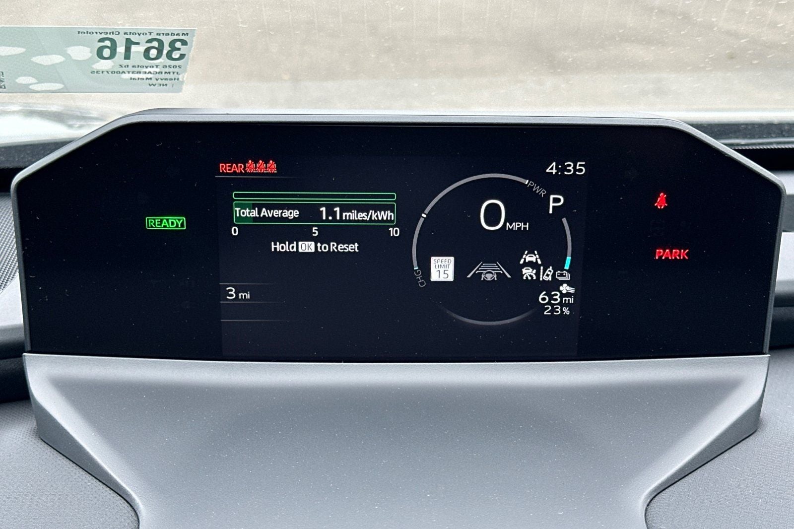- Top-mount Multi-Information Display (MID) with indicators and 7-in. LCD display with speedometer, charge meter, power output meter, drive mode indicators, instrumentation and customizable settings, odometer, tripmeters, clock, outside temperature, rear passenger seatbelt indicators, fuel economy information, trip timer, charging information and settings, and warning messages