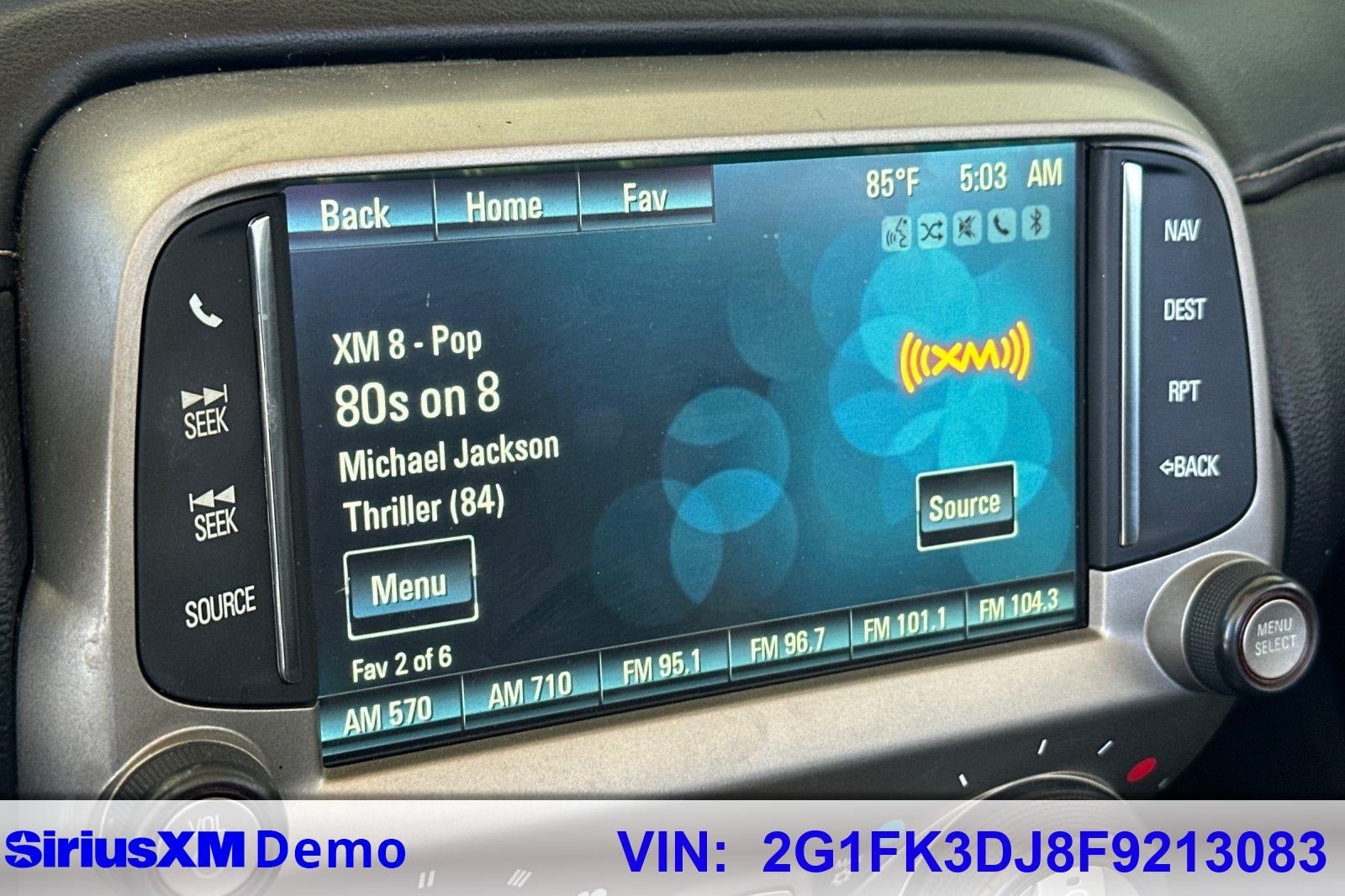2 Front Cup Holders, 20 x 8 Front & 20 x 9 Rear Aluminum Wheels, 20 x 8 Front & 20 x 9 Rear Polished Alum Wheels, 3-Spoke Leather-Wrapped Steering Wheel, 3.27 Axle Ratio, 4-Wheel Antilock 4-Wheel Disc Brakes, 4-Wheel Disc Brakes, 6-Way Power Driver Adjuster w/Power Recline, 6-Way Power Fr Passenger Adjuster w/Power Recline, 8 Speakers, ABS brakes, Air Conditioning, Alloy wheels, AM/FM radio: SiriusXM, AM/FM Stereo w/Navigation, Analog Instrumentation, Auto-dimming door mirrors, Auto-dimming Rear-View mirror, Auxiliary Multi-Function Gauges, Boston Acoustics Premium 8-Speaker Audio System, Brake assist, Bumpers: body-color, Carpeted Front Floor Mats, Color Display Driver Information Center, Compass, Convertible roof lining, Delay-off headlights, Driver door bin, Driver vanity mirror, Dual front impact airbags, Dual front side impact airbags, Electric Rear-Window Defogger, Electronic Cruise Control, Electronic Stability Control, Emergency communication system: OnStar Directions & Connections, Exterior Parking Camera Rear, Four wheel independent suspension, Front anti-roll bar, Front Bucket Seats, Front Center Armrest, Front fog lights, Front Leather Seating Surfaces, Front License Plate Bracket, Front reading lights, Front Sport Bucket Seats, Fully automatic headlights, Garage door transmitter, Glass rear window, Head-Up Display, Heads-Up Display, Heated door mirrors, Heated Driver & Front Passenger Seats, Heated front seats, High-Intensity Discharge Headlamps, Illuminated entry, LATCH System, Leather Shift Knob, Leather-Wrapped Shift Knob, Low tire pressure warning, Maintenance-Free Battery, Manual Rake & Telescopic Steering Column, Occupant sensing airbag, OnStar 6 Months Directions & Connections Plan, Outside temperature display, Panic alarm, Passenger door bin, Passenger vanity mirror, Power convertible roof, Power door mirrors, Power driver seat, Power passenger seat, Power Programmable Door Locks, Power steering, Power windows, Preferred Equipment Group 2SS, Premium audio system: Chevrolet MyLink, Radio data system, Radio: AM/FM Stereo w/Color Touch, Rear anti-roll bar, Rear Parking Sensors, Rear window defroster, Remote Keyless Entry, Remote keyless entry, Remote Vehicle Starter System, RS Package, Security system, Separate Daytime Running Lamps, SiriusXM Satellite Radio, Speed control, Speed-sensing steering, Spoiler, StabiliTrak, Stainless-Steel Dual-Outlet Exhaust, Steering Wheel Mounted Audio Controls, Steering wheel mounted audio controls, Tachometer, Telescoping steering wheel, Tilt steering wheel, Tonneau Cover, Traction control, Trip computer, Ultrasonic Rear Park Assist, Universal Home Remote, USB Port Audio System Feature, Variably intermittent wipers, Voltmeter.