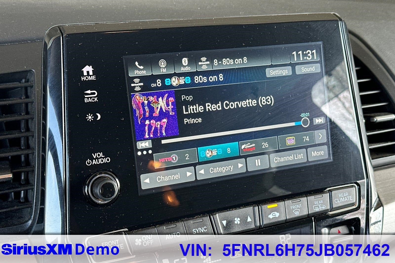 - Radio: 160-Watt AM/FM/HD/SiriusXM Audio System -inc: 6 speakers, subwoofer, Bluetooth® HandsFreeLink, Bluetooth® streaming audio, MP3/auxiliary input jack, radio data system (RDS), SMS text message function, 2.5-amp USB smartphone/audio interface port in center console, 2 2.5-amp USB charging ports in second row, CabinControl remote compatibility, 8" display audio w/high-resolution (720P) electrostatic touch-screen and customizable feature settings, Apple CarPlay/Android Auto, illuminated steering wheel-mounted audio controls and black fin-type roof-mounted antenna