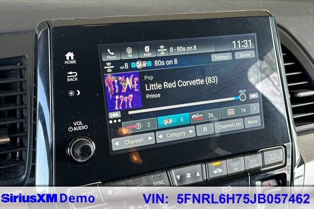3rd row seats: split-bench, 4-Wheel Disc Brakes, 4.33 Axle Ratio, 7 Speakers, ABS brakes, Air Conditioning, Alloy wheels, AM/FM radio: SiriusXM, Anti-whiplash front head restraints, Apple CarPlay/Android Auto, Auto High-beam Headlights, Auto-dimming Rear-View mirror, Automatic temperature control, Blind Spot Information (BSI) System warning, Brake assist, Bumpers: body-color, Delay-off headlights, Driver door bin, Driver vanity mirror, Driver's Seat Mounted Armrest, Dual front impact airbags, Dual front side impact airbags, Electronic Stability Control, Emergency communication system: HondaLink, Exterior Parking Camera Rear, Four wheel independent suspension, Front anti-roll bar, Front Bucket Seats, Front dual zone A/C, Front fog lights, Front reading lights, Fully automatic headlights, Garage door transmitter: HomeLink, Heated door mirrors, Heated Front Bucket Seats, Heated front seats, Illuminated entry, Knee airbag, Leather Seat Trim, Leather steering wheel, Low tire pressure warning, Memory seat, Occupant sensing airbag, Outside temperature display, Overhead airbag, Overhead console, Panic alarm, Passenger door bin, Passenger seat mounted armrest, Passenger vanity mirror, Power door mirrors, Power driver seat, Power Liftgate, Power moonroof, Power passenger seat, Power steering, Power windows, Radio data system, Radio: 160-Watt AM/FM/HD/SiriusXM Audio System, Rear air conditioning, Rear anti-roll bar, Rear reading lights, Rear seat center armrest, Rear window defroster, Rear window wiper, Reclining 3rd row seat, Remote keyless entry, Security system, Speed control, Speed-sensing steering, Speed-Sensitive Wipers, Split folding rear seat, Spoiler, Steering wheel mounted audio controls, Tachometer, Telescoping steering wheel, Tilt steering wheel, Traction control, Trip computer, Turn signal indicator mirrors, Variably intermittent wipers, Wheels: 18 Silver-Painted Alloy.