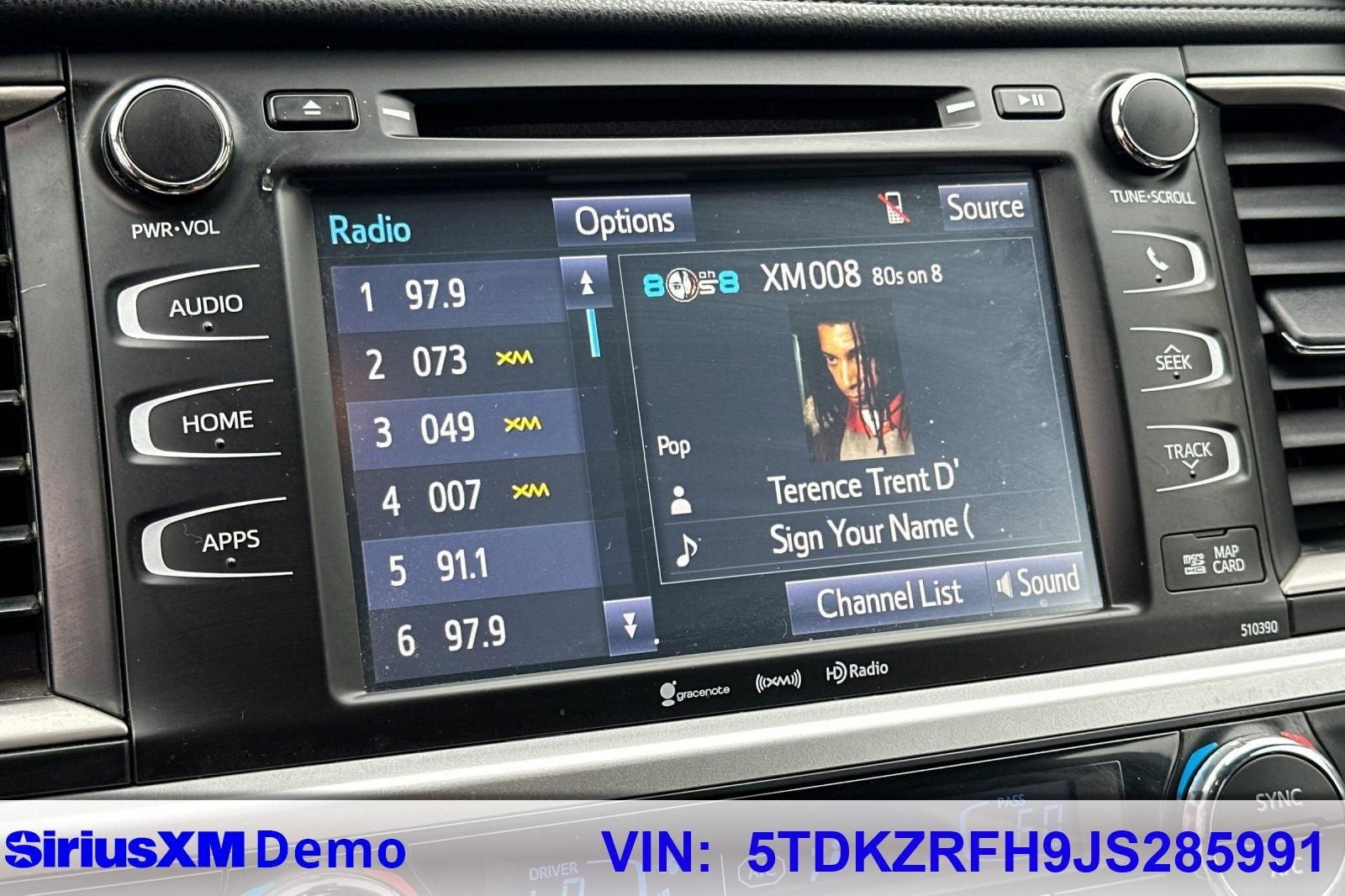 - Radio: Entune Premium Audio w/Nav & App Suite -inc: the Entune Multimedia Bundle (8" high resolution touch-screen w/split screen display, AM/FM CD player, MP3/WMA playback capability, 6 speakers, auxiliary audio jack, USB 2.0 port w/iPod connectivity and control, advanced voice recognition, hands-free phone capability, phone book access and music streaming via Bluetooth® wireless technology), Siri Eyes Free, Entune App Suite, Intelligent Touch controls, SiriusXM Satellite Radio w/3-month complimentary SirusXM All Access trial, HD Radio, HD Radio predictive traffic and Doppler weather overlay, AM/FM cache radio, Gracenotes album cover art and integrated back up camera display w/projected path