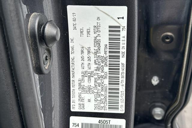 4WD, 120V/400W Deck Mounted AC Power, 6 Speakers, ABS brakes, Air Conditioning, Alloy wheels, AM/FM radio: SiriusXM, Anti-whiplash front head restraints, Auto High-beam Headlights, Auto-Dimming Inside Rear-View Mirror w/Compass, Auto-dimming Rear-View mirror, Axle Ratio: 4.30, Black Overfenders, Brake assist, Bumpers: body-color, CD player, Driver door bin, Dual front impact airbags, Dual front side impact airbags, Electronic Stability Control, Engine Immobilizer, Entune App Suite, Exterior Parking Camera Rear, Fabric Seat Trim (FD), Front anti-roll bar, Front Bucket Seats, Front Center Armrest, Front fog lights, Front reading lights, Front wheel independent suspension, Illuminated entry, Knee airbag, Leather Shift Knob, LED Daytime Running Lamps, Low tire pressure warning, Navigation System, Occupant sensing airbag, Outside temperature display, Overhead airbag, Overhead console, Panic alarm, Passenger door bin, Power door mirrors, Power Sliding Rear Window w/Privacy Glass, Power steering, Power windows, Radio: Entune Premium w/AM/FM/CD/Nav/App Suite, Rear step bumper, Remote keyless entry, Remote Keyless Entry System, Security system, Speed control, Speed-sensing steering, Split folding rear seat, Steering wheel mounted audio controls, Tachometer, Telescoping steering wheel, Tilt steering wheel, Traction control, Trip computer, Turn signal indicator mirrors, Variable Intermittent Wipers, Variably intermittent wipers, Wheels: 16 x 7 Machined Contrast Alloy, Wide Angle Front Fog Lamps, 4WD.