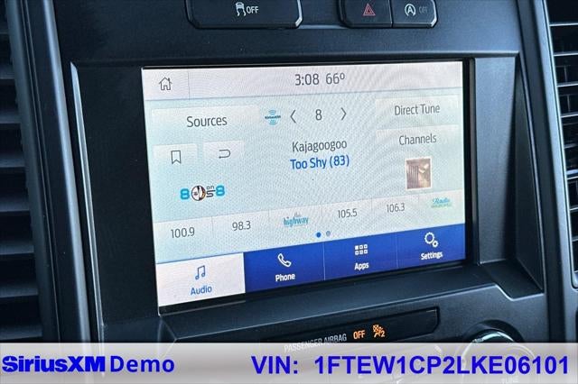 20 Machined-Aluminum Wheels, 3.55 Axle Ratio, 4-Wheel Disc Brakes, 6 Speakers, ABS brakes, Air Conditioning, AM/FM radio, Auto High-beam Headlights, Body-Color Front & Rear Bumpers, Body-Color Surround w/Black Mesh Insert Grille, Box Side Decals, Brake assist, Class IV Trailer Hitch Receiver, Cloth 40/20/40 Front Seat, Color-Coordinated Carpet w/Carpeted Floor Mats, Compass, Cruise Control, Delay-off headlights, Driver door bin, Driver/Passenger Seat Back Pocket, Dual front impact airbags, Dual front side impact airbags, Electronic Stability Control, Equipment Group 101A Mid, Extended Range 36 Gallon Fuel Tank, Exterior Parking Camera Rear, Fog Lamps, FordPass Connect (4G), Front anti-roll bar, Front Center Armrest, Front License Plate Bracket, Front wheel independent suspension, Fully automatic headlights, Illuminated Entry, Integrated Trailer Brake Controller, Low tire pressure warning, Manual Driver/Passenger Lumbar, MyKey, Occupant sensing airbag, Outside temperature display, Overhead airbag, Passenger door bin, Passenger vanity mirror, Perimeter Alarm, Power Door Locks, Power Front & Rear Windows, Power Glass Sideview Mirrors w/Black Skull Caps, Power steering, Power Tailgate Lock, Radio: AM/FM Stereo w/6 Speakers, Rear step bumper, Rear Window Defroster, Rear Window Fixed Privacy Glass, Reverse Sensing System, SiriusXM Radio, Speed-sensing steering, Split folding rear seat, STX Appearance Package, SYNC 3, Tachometer, Tailgate Step w/Tailgate Lift Assist, Telescoping steering wheel, Tilt steering wheel, Traction control, Unique Sport Cloth 40/20/40 Front-Seats, Variably intermittent wipers, Voltmeter, Wheels: 17 Silver Painted Aluminum, Wheels: 17 Silver Steel, XL Power Equipment Group, XL Sport Appearance Package.