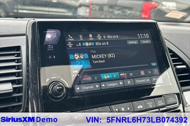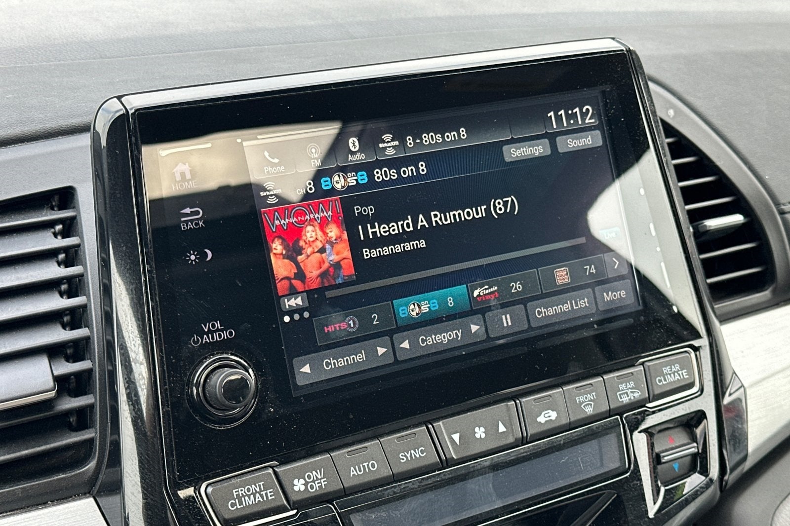 - Radio: 160-Watt AM/FM/HD/SiriusXM Audio System -inc: 7 speakers including subwoofer, Speed-Sensitive Volume Compensation (SVC), Bluetooth® HandsFreeLink, Bluetooth® streaming audio, MP3/auxiliary input jack, Radio Data System (RDS), SMS text message function, 2.5-amp USB audio interface port in front, 2.5-amp USB charging port in center console, (2) 2.5-amp USB charging ports in second row, CabinControl remote compatibility, 8" display audio w/high-resolution (720P) electrostatic touch-screen and customizable feature settings, HondaLink, Apple CarPlay, Android Auto, illuminated steering wheel-mounted audio controls and black fin-type roof-mounted antenna, SiriusXM services require a subscription after any trial period, If you decide to continue your SiriusXM service at the end of your trial subscription, the plan you choose will automatically renew and bill at then-current rates until you call SiriusXM at 1-866-635-2349 to cancel, See our customer agreement for complete terms at www.siriusxm.com, Fees and programming subject to change, XM satellite service is available only to those at least 18 years and older in the 48 contiguous United States and DC