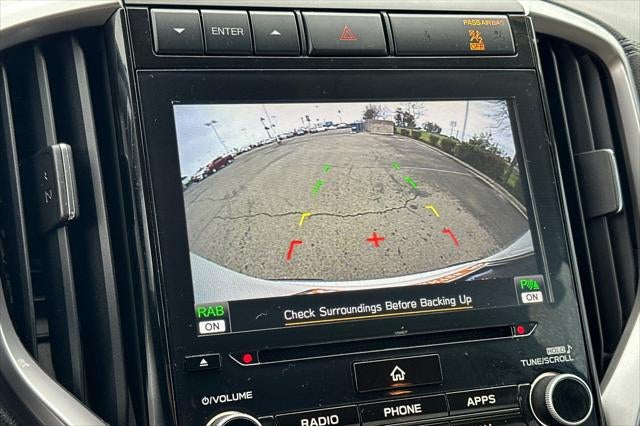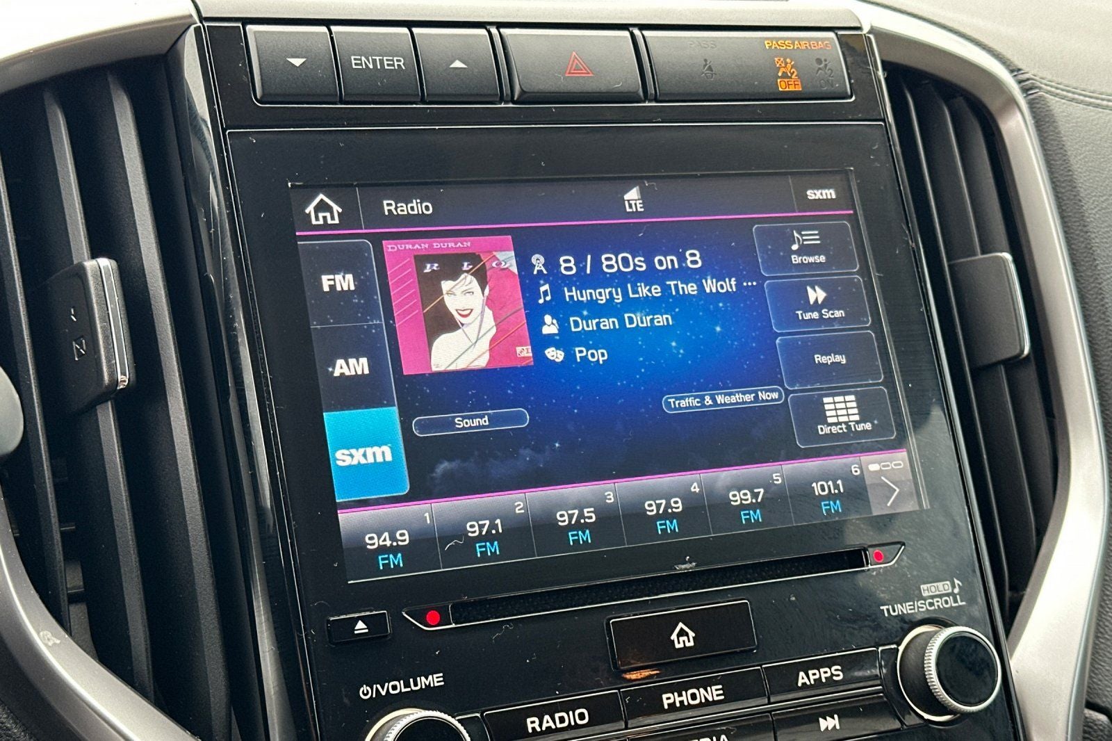 - Radio: Subaru STARLINK 8.0" Multimedia Plus System -inc: AM/FM stereo HD Radio w/single disc CD player, MP3/WMA/CRR/RW file capability, multi-touch gesture high resolution LCD display screen, voice activated controls, Bluetooth® audio streaming connectivity, Bluetooth® hands-free phone connectivity, Bluetooth® hands-free SMS text messaging connectivity (applicable w/compatible cell phone), Near Field Communication (NFC), iPod control capability, SiriusXM All Access radio (subscription required), SiriusXM Travel Link (subscription required), smartphone integration for Aha, Android Auto, CarPlay and Pandora, STARLINK cloud applications, steering wheel controls for audio and Bluetooth®, 6 speakers, 3.5mm auxiliary input jack and front, second and third row dual USB ports