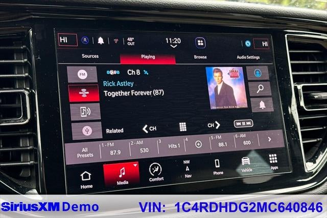 1-Year Trial (Registration Required), 10.1 Touchscreen Display, 3.27 Rear Axle Ratio, 3rd row seats: split-bench, 4-Wheel Disc Brakes, 4G LTE Wi-Fi Hot Spot, 6 Speakers, ABS brakes, Air Conditioning, Alloy wheels, AM/FM radio: SiriusXM, Anti-whiplash front head restraints, Apple CarPlay, Apple CarPlay/Android Auto, Auto-dimming Rear-View mirror, Auto-leveling suspension, Automatic temperature control, Brake assist, Bumpers: body-color, Cloth Bucket Seats w/Shift Insert, Compass, Connected Travel & Traffic Services, Delay-off headlights, Disassociated Touchscreen Display, Driver door bin, Driver vanity mirror, Dual front impact airbags, Dual front side impact airbags, Electronic Stability Control, For Details Visit DriveUconnect.com, Four wheel independent suspension, Front anti-roll bar, Front Bucket Seats, Front Center Armrest w/Storage, Front dual zone A/C, Front fog lights, Front License Plate Bracket, Front reading lights, Fully automatic headlights, Global Telematics Box Module (TBM), Google Android Auto, GPS Antenna Input, GPS Navigation, HD Radio, Heated door mirrors, Illuminated entry, Integrated Center Stack Radio, Integrated Voice Command w/Bluetooth®, Knee airbag, Leather steering wheel, Low tire pressure warning, Manufacturer's Statement of Origin, Occupant sensing airbag, Outside temperature display, Overhead airbag, Overhead console, Panic alarm, ParkView Rear Back-Up Camera, Passenger door bin, Passenger vanity mirror, Power door mirrors, Power driver seat, Power steering, Power windows, Quick Order Package 2BD GT, Radio data system, Radio: Uconnect 4 w/8.4 Display, Radio: Uconnect 5 Nav w/10.1 Display, Rear air conditioning, Rear anti-roll bar, Rear Load Leveling Suspension, Rear reading lights, Rear seat center armrest, Rear window defroster, Rear window wiper, Remote keyless entry, SiriusXM Guardian - Included Trial (B), SiriusXM Satellite Radio, SiriusXM w/360L, Speed control, Speed-sensing steering, Speed-Sensitive Wipers, Split folding rear seat, Spoiler, Steering wheel mounted audio controls, Tachometer, Telescoping steering wheel, Tilt steering wheel, Traction control, Trip computer, USB Host Flip, Variably intermittent wipers, Voltmeter, Wheels: 20 x 8.0 Fine Silver.