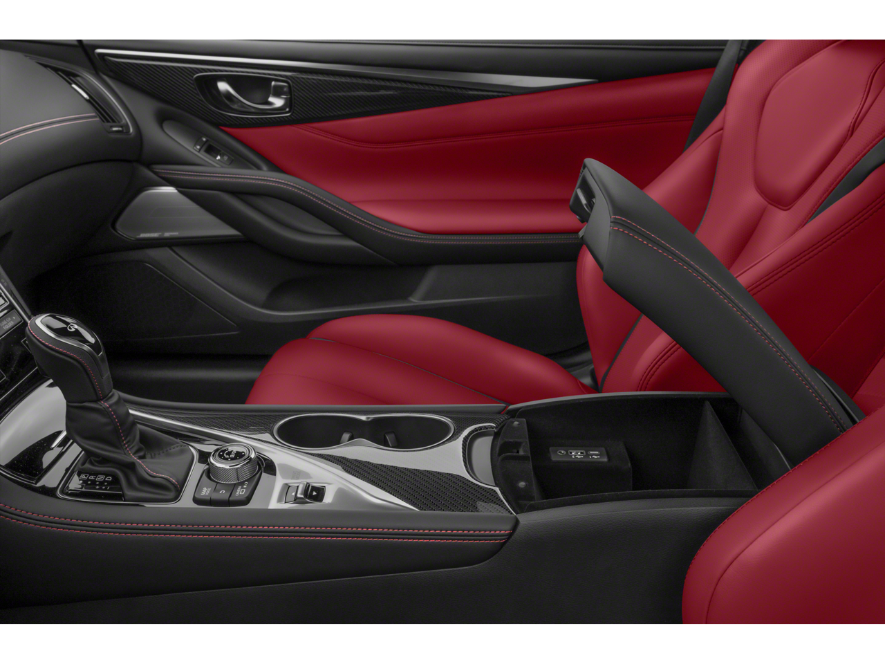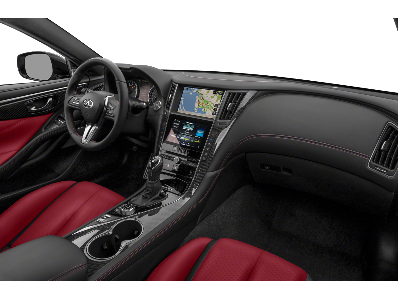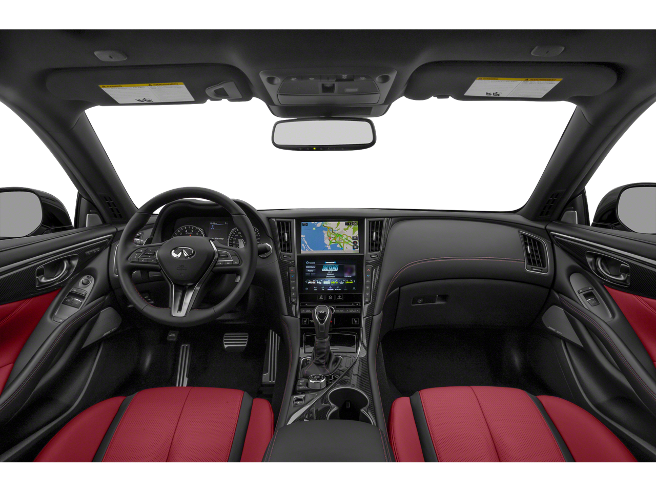 13 Speakers, 4-Wheel Disc Brakes, ABS brakes, Active Lane Control, Adaptive Front Lighting System, Adaptive suspension, Air Conditioning, Alloy wheels, AM/FM radio: SiriusXM, Apple CarPlay/Android Auto, Auto High-beam Headlights, Auto tilt-away steering wheel, Auto-dimming door mirrors, Auto-dimming Rear-View mirror, Automatic temperature control, Blind Spot Warning, Blind-Spot Intervention, Brake assist, Bumpers: body-color, CD player, Compass, Delay-off headlights, Direct Adaptive Steering, Driver door bin, Driver vanity mirror, Dual front impact airbags, Dual front side impact airbags, ECO Pedal, Electronic Stability Control, Emergency communication system: INFINITI Connection, Four wheel independent suspension, Front anti-roll bar, Front Bucket Seats, Front Center Armrest, Front dual zone A/C, Front fog lights, Front reading lights, Front Seat Driver/Passenger Pre-Crash Seatbelts, Fully automatic headlights, Garage door transmitter: HomeLink, Heated door mirrors, Heated Front Bucket Seats, Heated front seats, Heated steering wheel, Illuminated entry, Lane Departure Prevention, Leather Shift Knob, Leather steering wheel, Literature Kit, Low tire pressure warning, Memory seat, Navigation system: INFINITI InTouch Navigation, Occupant sensing airbag, Outside temperature display, Overhead airbag, Overhead console, Panic alarm, Passenger door bin, Passenger vanity mirror, Power door mirrors, Power driver seat, Power moonroof, Power passenger seat, Power steering, Power windows, Premium Paint, ProACTIVE Package, Radio data system, Radio: INFINITI InTouch w/AM/FM/HD/CD/Navigation, Rain sensing wipers, Rear anti-roll bar, Rear window defroster, Remote keyless entry, Security system, Semi-Aniline Leather-Appointed Seating Surfaces, Speed control, Speed-sensing steering, Speed-Sensitive Wipers, Steering wheel memory, Steering wheel mounted audio controls, Tachometer, Telescoping steering wheel, Tilt steering wheel, Traction control, Trip computer, Turn signal indicator mirrors, Variably intermittent wipers, Wheels: 20 Staggered Aluminum-Alloy Sport.