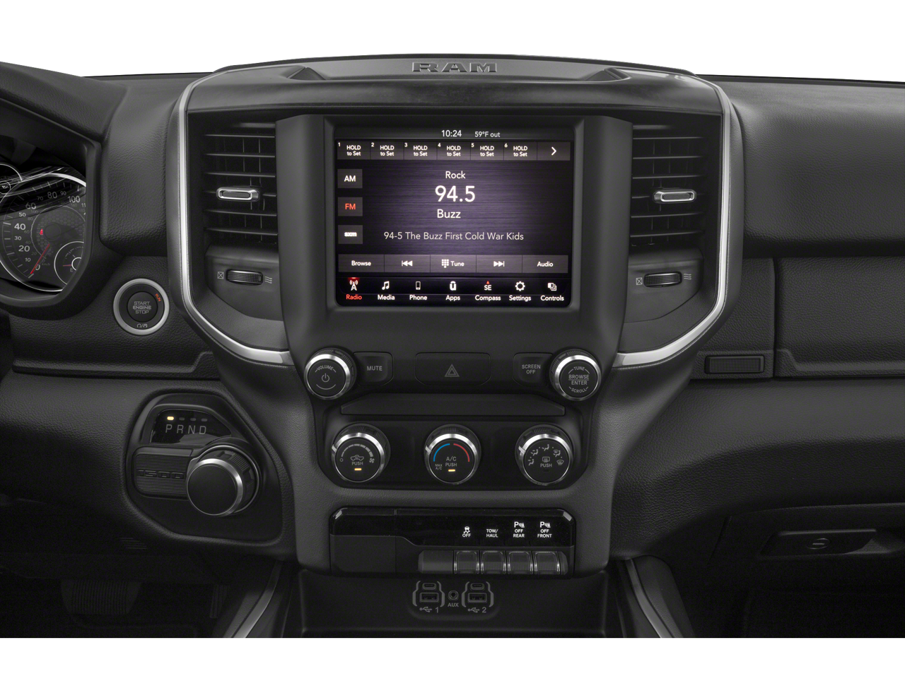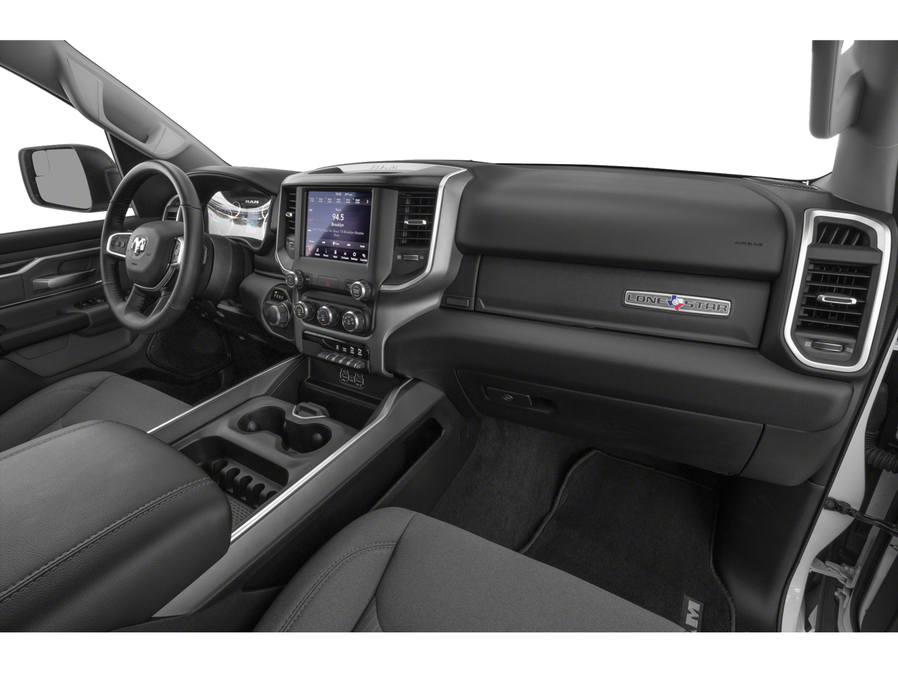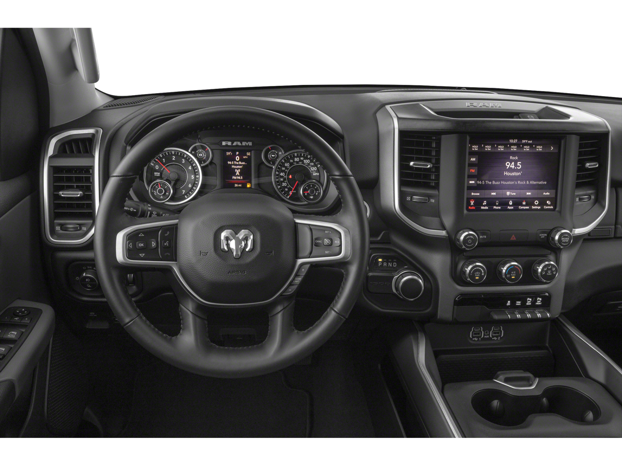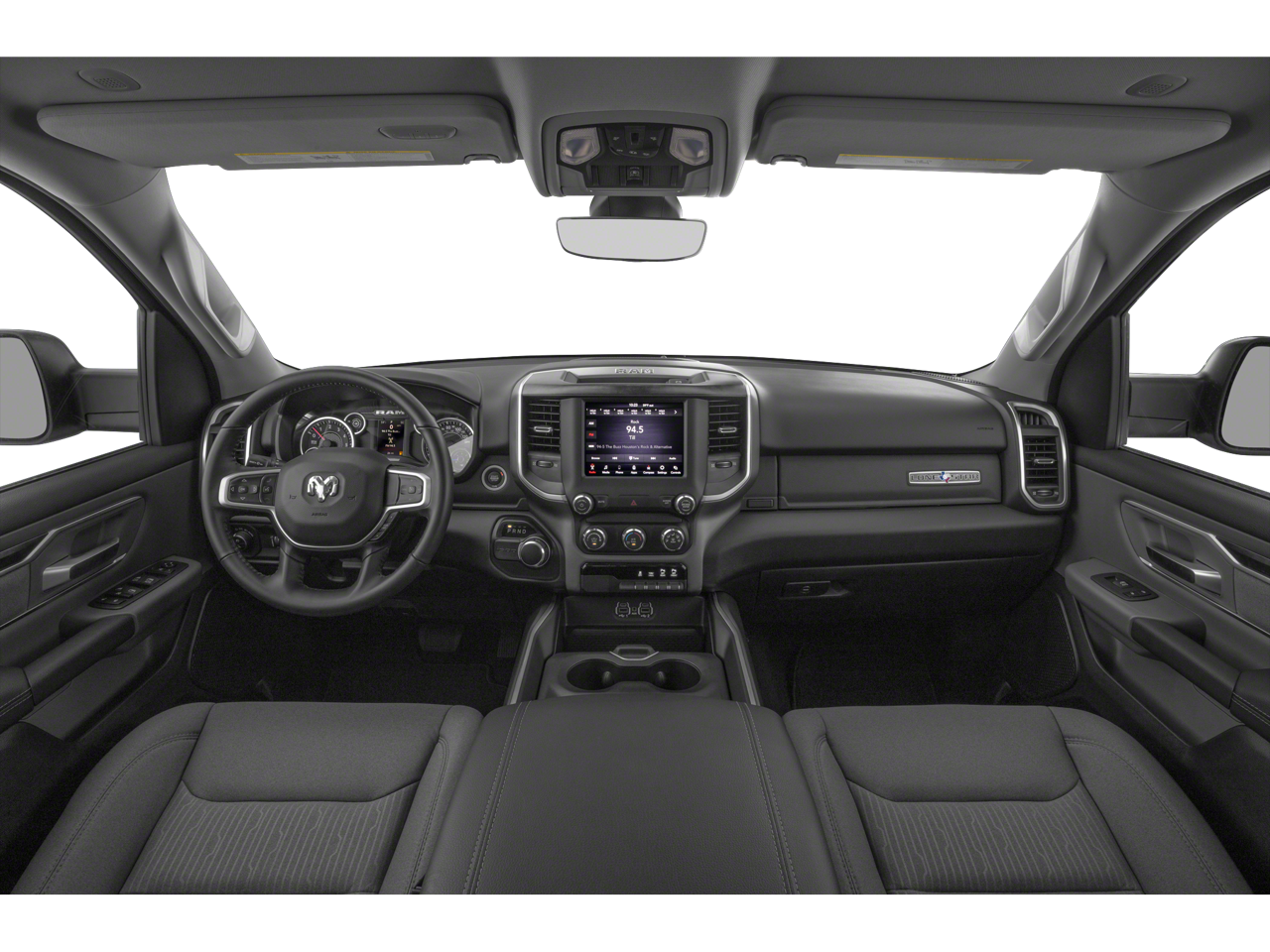 1-Yr SiriusXM Guardian Trial, 115V Auxiliary Power Outlet, 115V Auxiliary Rear Power Outlet, 12 Touchscreen Display, 2nd Row In Floor Storage Bins, 3 Rear Seat Head Restraints, 3.21 Rear Axle Ratio, 4 Way Front Headrests, 4-Wheel Disc Brakes, 40/20/40 Split Bench Seat, 400W Inverter, 48V Belt Starter Generator, 4G LTE Wi-Fi Hot Spot, 5-Year SiriusXM Traffic Service, 5-Year SiriusXM Travel Link Service, 6 Speakers, 9 Amplified Speakers w/Subwoofer, ABS brakes, Accent Color Premium Power Mirrors, Add Class IV Receiver Hitch, Air Conditioning, Air Conditioning ATC w/Dual Zone Control, Alloy wheels, AM/FM radio, Anti-Spin Differential Rear Axle, Apple CarPlay, Auto-Dimming Exterior Driver Mirror, Auto-Dimming Rear-View Mirror, Big Horn Badge, Big Horn Level 2 Equipment Group, Black Exterior Mirrors, Black Exterior Truck Badging, Black Headlamp Bezels, Black Interior Accents, Black Painted Exterior Mirrors Caps, Black Premium Power Mirrors, Blind Spot & Cross Path Detection, Body Color Front Bumper, Body Color Rear Bumper w/Step Pads, Brake assist, Bucket Seats, Bumpers: chrome, Center Console Parts Module, Class IV Receiver Hitch, Cloth Bench Seat, Cluster 7.0 TFT Color Display, Compass, Delay-off headlights, Deluxe Cloth Bucket Seats, Disassociated Touchscreen Display, Dome Dual LED Reading Lamp, Driver door bin, Dual Exhaust w/Black Tips, Dual front impact airbags, Dual front side impact airbags, Dual-Pane Panoramic Sunroof, Electronic Stability Control, Exterior Mirrors Courtesy Lamps, Exterior Mirrors w/Memory, Exterior Mirrors w/Supplemental Signals, Foam Bottle Insert (Door Trim Panel), For Details, Visit DriveUconnect.com, For More Info, Call 800-643-2112, Front anti-roll bar, Front Center Armrest w/Storage, Front fog lights, Front License Plate Bracket, Front reading lights, Front Seat Back Map Pockets, Front wheel independent suspension, Full Length Floor Console, Fully automatic headlights, Glove Box Lamp, Google Android Auto, GPS Antenna Input, GPS Navigation, HD Radio, Heated door mirrors, Heated Front Seats, Heated Steering Wheel, Illuminated entry, Integrated Center Stack Radio, Integrated Voice Command w/Bluetooth®, Leather steering wheel, LED Footwell Lighting, LED Taillamps, Low tire pressure warning, Manual Adjust 4-Way Front Passenger Seat, Manufacturer's Statement of Origin, Media Hub w/2 Charge Only USBs, MOPAR Front & Rear Rubber Floor Mats, Night Edition, Occupant sensing airbag, Outside temperature display, Overhead airbag, Overhead console, Overhead LED Lamps, Panic alarm, ParkSense Front/Rear Park Assist w/Stop, ParkView Rear Back-Up Camera, Passenger door bin, Passenger vanity mirror, Power 4-Way Driver Lumbar Adjust, Power 8-Way Driver Seat, Power Adjustable Pedals, Power door mirrors, Power steering, Power windows, Power-Folding Mirrors, Premium Overhead Console, Quick Order Package 27Z Big Horn, Radio data system, Radio: Uconnect 12 w/Navigation, Radio: Uconnect 3 w/5 Display, Rear 60/40 Folding Seat, Rear anti-roll bar, Rear Dome w/On/Off Switch Lamp, Rear Power Sliding Window, Rear seat center armrest, Rear step bumper, Rear Underseat Compartment Storage, Rear Wheelhouse Liners, Rear Window Defroster, Remote keyless entry, Remote Start System, Security Alarm, SiriusXM Radio Service, SiriusXM Satellite Radio, SiriusXM Traffic Plus, SiriusXM Travel Link, SiriusXM w/360L, Speed control, Split folding rear seat, Steering wheel mounted audio controls, Sun Visors w/Illuminated Vanity Mirrors, Tachometer, Telescoping steering wheel, Tilt steering wheel, Traction control, Trailer Brake Control, Trailer Light Check, Trailer Reverse Steering Control, Trailer Tire Pressure Monitoring System, Trailer Tow Group, Trip computer, Universal Garage Door Opener, USB Host Flip, Variably intermittent wiper