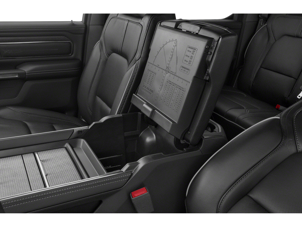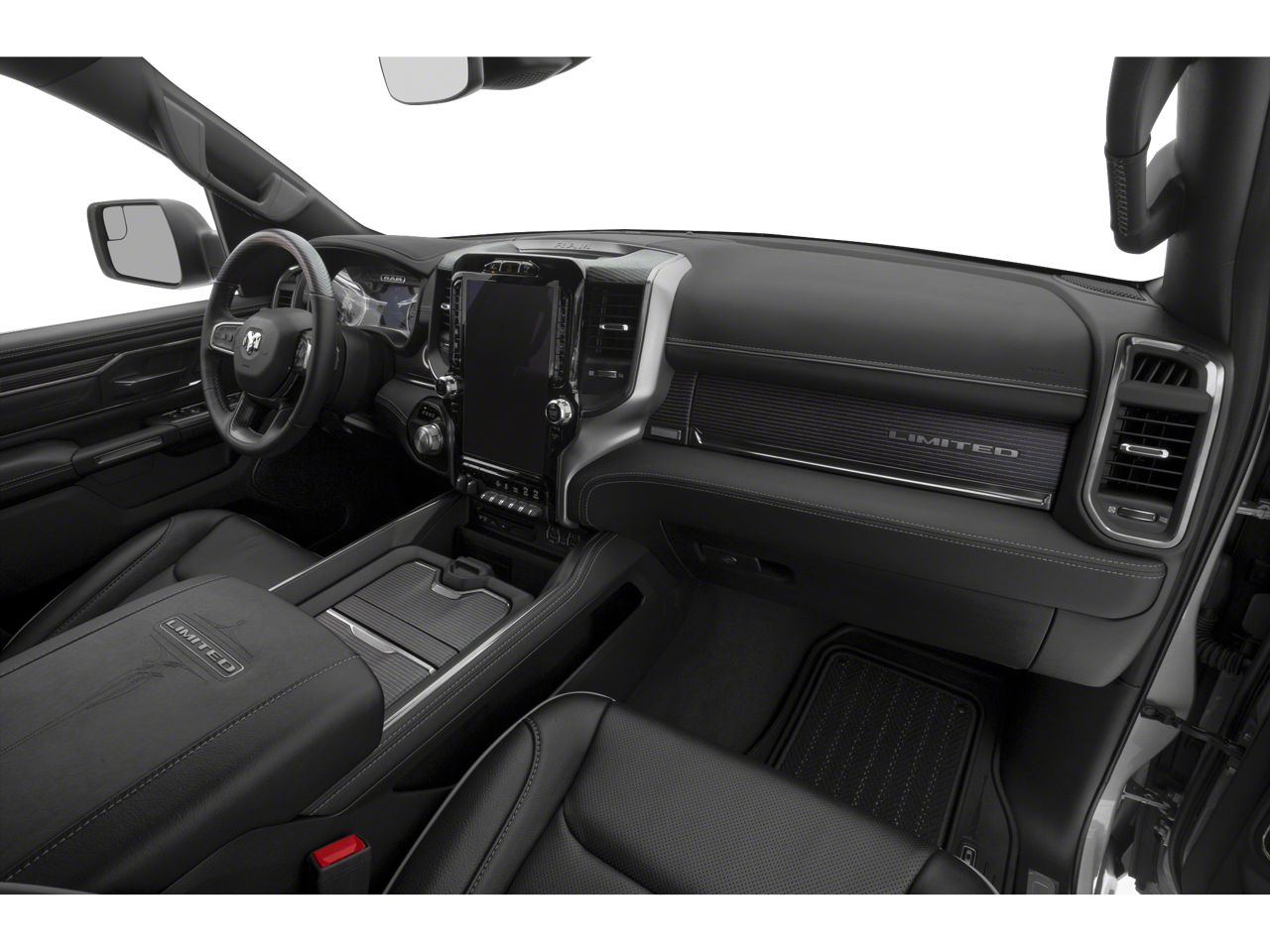 1-Yr SiriusXM Guardian Trial, 10 Speakers, 3.21 Rear Axle Ratio, 3.92 Rear Axle Ratio, 4-Wheel Disc Brakes, 48V Belt Starter Generator, 4G LTE Wi-Fi Hot Spot, ABS brakes, Accent Color Premium Power Mirrors, Adaptive Cruise Control w/Stop & Go, Adjustable pedals, Air Conditioning, Alloy wheels, AM/FM radio: SiriusXM with 360L, Anti-Spin Differential Rear Axle, Apple CarPlay, Apple CarPlay/Android Auto, Audio memory, Auto High-beam Headlights, Auto-dimming door mirrors, Auto-dimming Rear-View mirror, Auto-leveling suspension, Automatic temperature control, Black Day Light Opening Moldings, Black Exterior Truck Badging, Black Grille Surround Texture 7 Chrome, Black Headlamp Bezels, Black Painted Exterior Mirrors Caps, Body Color Door Handles, Body Color Front Bumper, Body Color Rear Bumper w/Step Pads, Bodyside moldings, Brake assist, Bumpers: chrome, Chrome Exterior Mirrors, Compass, Delay-off headlights, Disassociated Touchscreen Display, Dome Dual LED Reading Lamp, Driver door bin, Driver vanity mirror, Dual Exhaust w/Black Tips, Dual front impact airbags, Dual front side impact airbags, Dual-Pane Panoramic Sunroof, Electronic Stability Control, Emergency communication system: SiriusXM Guardian, For More Info, Call 800-643-2112, Front anti-roll bar, Front Bucket Seats, Front Center Armrest w/Storage, Front dual zone A/C, Front fog lights, Front License Plate Bracket, Front reading lights, Front wheel independent suspension, Fully automatic headlights, Garage door transmitter, Genuine wood console insert, Genuine wood dashboard insert, Genuine wood door panel insert, Google Android Auto, GPS Antenna Input, GPS Navigation, harman/kardon 19 Speaker Premium Sound, HD Radio, Heads-Up Display, Heated door mirrors, Heated front seats, Heated rear seats, Heated steering wheel, Illuminated entry, Integrated Center Stack Radio, Integrated Voice Command w/Bluetooth®, Lane Keep Assist, Leather steering wheel, LED CHMSL Lamp, LED Dome/Reading Lamp, Limited Level 1 Equipment Group, Low tire pressure warning, Manufacturer's Statement of Origin, Memory seat, Navigation System, Night Edition, Occupant sensing airbag, Outside temperature display, Overhead airbag, Overhead console, Panic alarm, Parallel & Perp Park Assist w/Stop, ParkView Rear Back-Up Camera, Passenger door bin, Passenger vanity mirror, Pedal memory, Pedestrian Emergency Braking, Power door mirrors, Power driver seat, Power passenger seat, Power steering, Power windows, Premium Leather Trimmed Bucket Seats, Quick Order Package 28M Limited, Radio data system, Radio: Uconnect 12 w/Navigation, Rain sensing wipers, RAM Grille Badge - Black, Rear anti-roll bar, Rear seat center armrest, Rear step bumper, Rear window defroster, Rearview Autodim Digital Display Mirror, Remote keyless entry, Security system, SiriusXM Radio Service, SiriusXM Satellite Radio, SiriusXM Traffic Plus, SiriusXM Travel Link, Speed control, Split folding rear seat, Sport Performance Hood, Steering wheel mounted audio controls, Surround View Camera System, Tachometer, Technology Group, Telescoping steering wheel, Tilt steering wheel, Tow Hooks, Traction control, Trailer Brake Control, Tri-Fold Tonneau Cover, Trip computer, Turn signal indicator mirrors, USB Host Flip, Variably intermittent wipers, Ventilated front seats, Ventilated Rear Seats, Voltmeter, Wheels: 20 x 9 Polished w/Inserts, Wheels: 22 x 9 Black Aluminum.