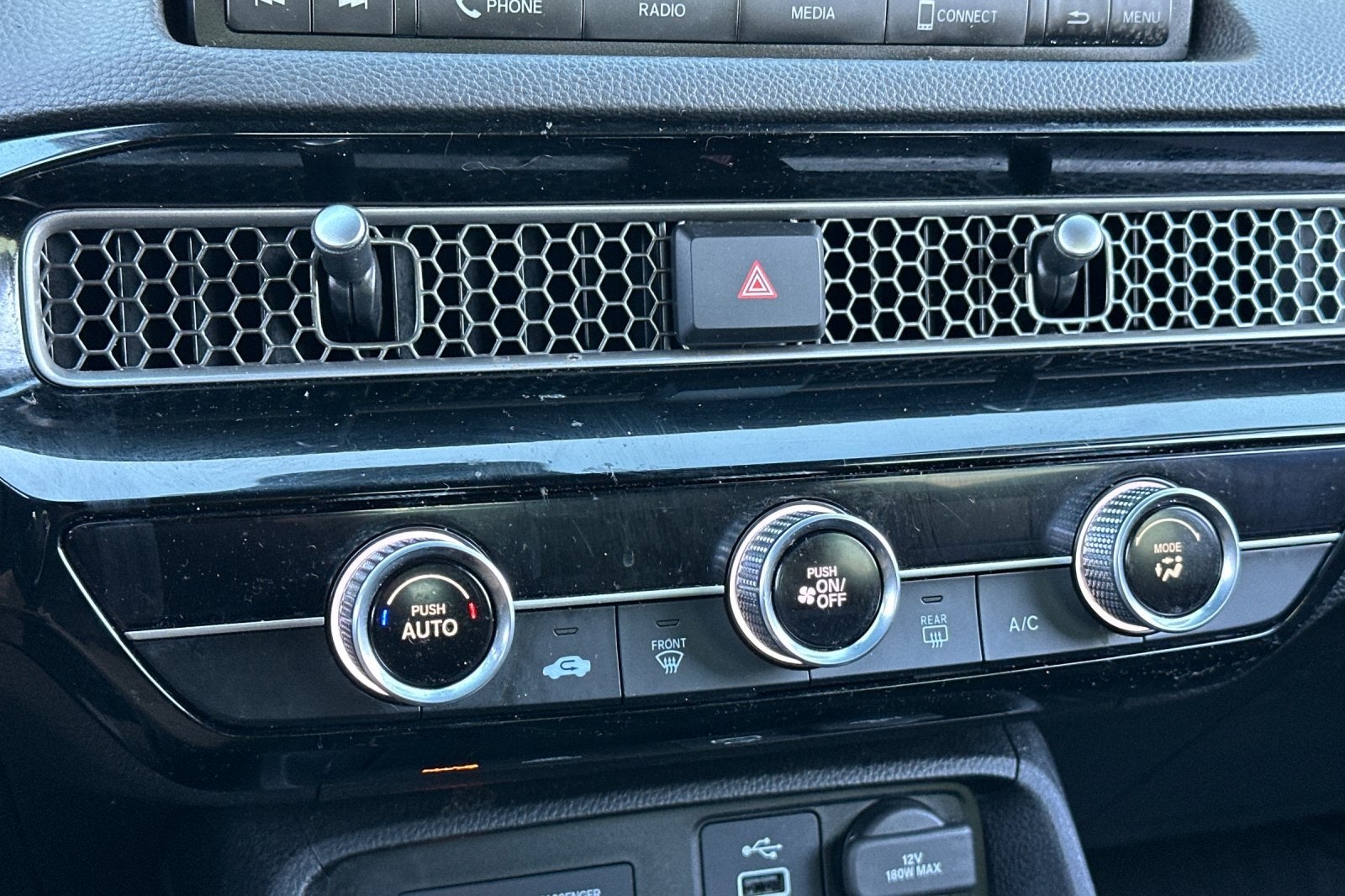 Cloth, 18 Alloy Wheels, 4-Wheel Disc Brakes, 8 Speakers, ABS brakes, Adaptive Cruise Control: Adaptive Cruise Control (ACC) with Low-Speed Follow, Air Conditioning, Alloy wheels, AM/FM radio, Apple CarPlay/Android Auto, Auto High-beam Headlights, Automatic temperature control, Brake assist, Bumpers: body-color, Delay-off headlights, Driver door bin, Driver vanity mirror, Dual front impact airbags, Dual front side impact airbags, Electronic Stability Control, Emergency communication system: HondaLink, Exterior Parking Camera Rear, Fabric Seating Surfaces, Forward collision: Collision Mitigation Braking System (CMBS) + FCW mitigation, Four wheel independent suspension, Front anti-roll bar, Front Bucket Seats, Front Center Armrest, Front reading lights, Fully automatic headlights, Illuminated entry, Knee airbag, Lane departure: Lane Keeping Assist System (LKAS) active, Leather Shift Knob, Leather steering wheel, Low tire pressure warning, Occupant sensing airbag, Outside temperature display, Overhead airbag, Panic alarm, Passenger door bin, Passenger vanity mirror, Power door mirrors, Power steering, Power windows, Radio data system, Radio: 180-Watt Audio System, Rear anti-roll bar, Rear side impact airbag, Rear window defroster, Rear window wiper, Remote keyless entry, Security system, Speed control, Speed-sensing steering, Split folding rear seat, Steering wheel mounted audio controls, Tachometer, Telescoping steering wheel, Tilt steering wheel, Traction control, Trip computer, Voltmeter, Cloth.