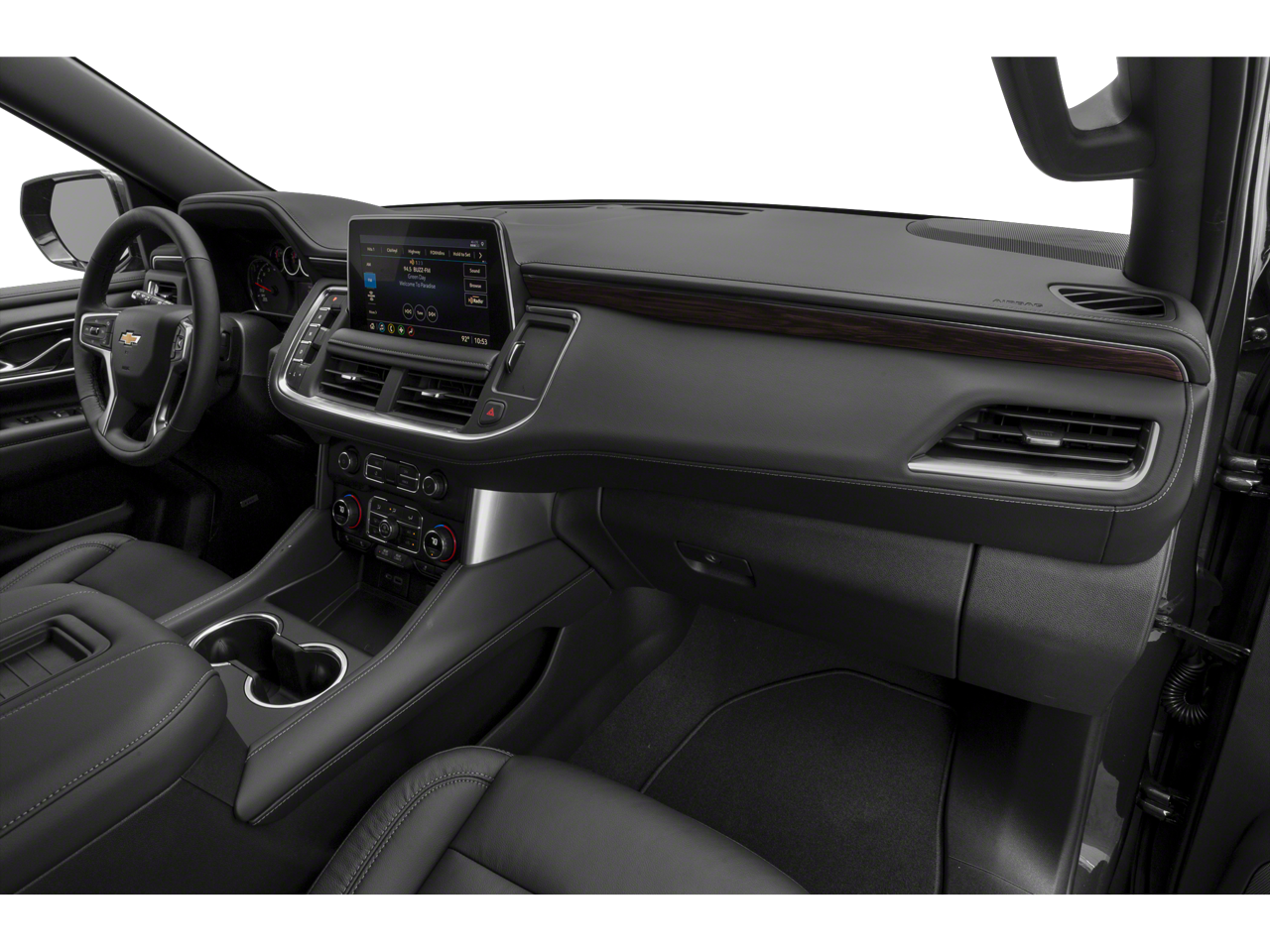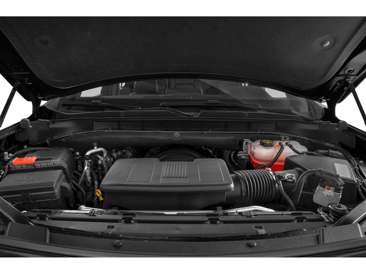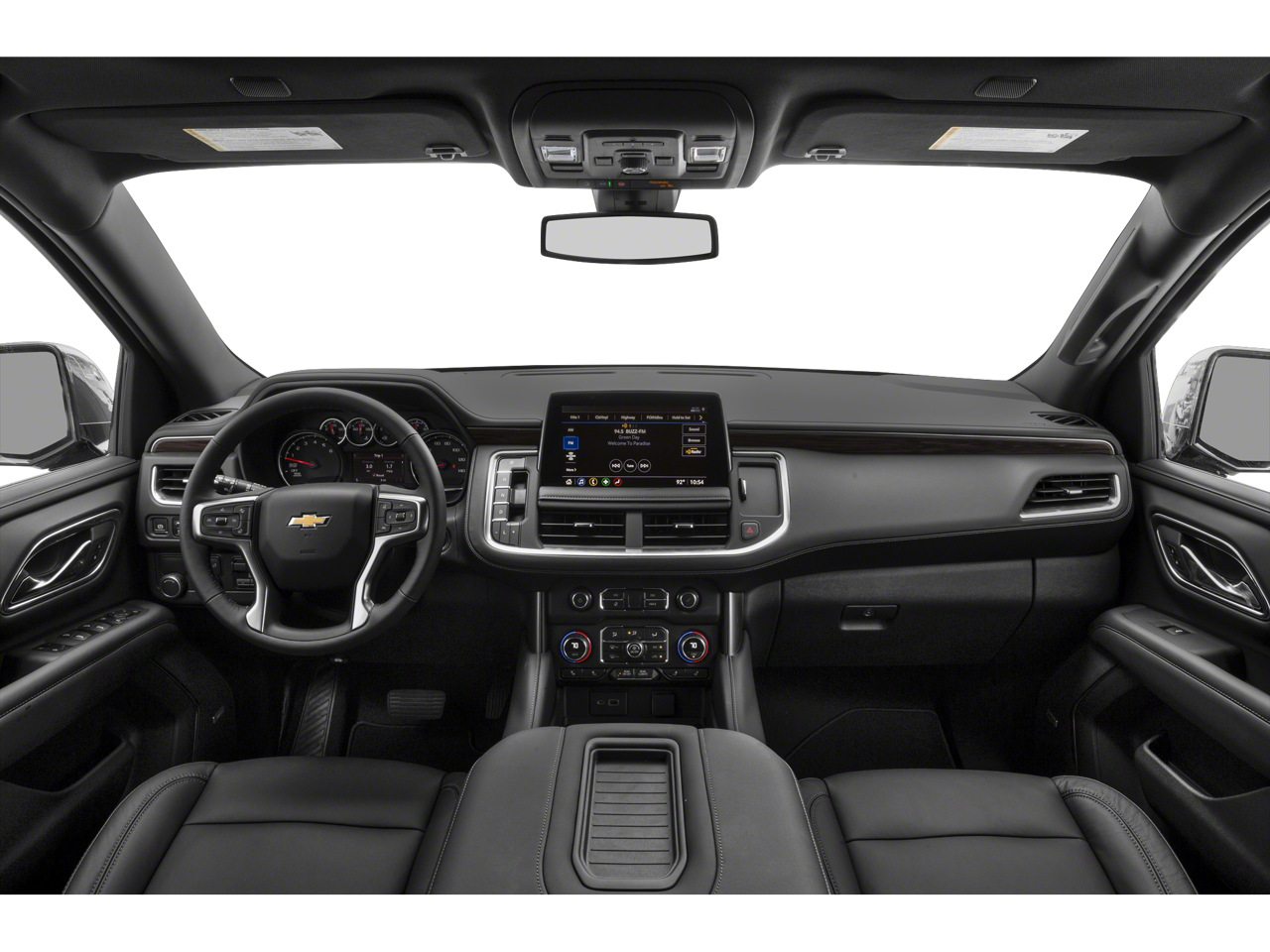 4WD, Black Leather, 10-Way Power Driver & Passenger Seat Adjusters, 1st & 2nd Row Color-Keyed Carpeted Floor Mats, 3.23 Rear Axle Ratio, 3rd row seats: split-bench, 4-Wheel Disc Brakes, 9 Speakers, ABS brakes, Air Conditioning, Alloy wheels, AM/FM radio: SiriusXM with 360L, Apple CarPlay/Android Auto, Auto High-beam Headlights, Auto-Dimming Inside Rear-View Mirror, Auto-dimming Rear-View mirror, Automatic temperature control, Bose 9-Speaker Stereo Audio System Feature, Brake assist, Bright Front & Rear Door Sill Plates, Bumpers: body-color, Color-Keyed Carpeting Floor Covering, Compass, Delay-off headlights, Deleted 3 Years of Remote Access, Driver & Front Outboard Passenger Airbags, Driver door bin, Driver vanity mirror, Dual front impact airbags, Dual front side impact airbags, Electronic Stability Control, Emergency communication system: OnStar and Chevrolet connected services capable, Enhanced Driver Information Center, Floor Console w/Storage Area, Four wheel independent suspension, Front anti-roll bar, Front Bucket Seats, Front Center Armrest, Front dual zone A/C, Front High-Back Reclining Bucket Seats, Front reading lights, Fully automatic headlights, Garage door transmitter, Hands-Free Rear Power Programmable Liftgate, Heated door mirrors, Heated Driver & Front Passenger Seats, Heated front seats, Illuminated entry, Infotainment Display, Leather-Appointed Seat Trim, LED Daytime Running Lamps, License Plate Front Mounting Package, Low tire pressure warning, Memory seat, Memory Settings for Driver, Navigation System, Occupant sensing airbag, Outside temperature display, Overhead airbag, Overhead console, Panic alarm, Passenger door bin, Passenger vanity mirror, Power door mirrors, Power driver seat, Power Liftgate, Power passenger seat, Power steering, Power windows, Preferred Equipment Group 1LT, Premium audio system: Chevrolet Infotainment 3 Premium, Premium Smooth Ride Suspension, Radio: Chevrolet Infotainment 3 Premium System, Rain sensing wipers, Rear air conditioning, Rear anti-roll bar, Rear reading lights, Rear seat center armrest, Rear window defroster, Rear window wiper, Remote keyless entry, Remote Start, Roof rack: rails only, Security system, SiriusXM Radio w/360L, Speed control, Speed-sensing steering, Split folding rear seat, Spoiler, Steering wheel mounted audio controls, Tachometer, Telescoping steering wheel, Tilt steering wheel, Traction control, Trip computer, Universal Home Remote, Variably intermittent wipers, Voltmeter, Wheels: 18 x 8.5 Bright Silver Painted Aluminum, Wireless Charging, Wrapped Steering Wheel, 4WD, Black Leather.