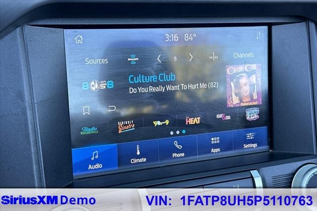 4-Wheel Disc Brakes, 4G LTE Wi-Fi Hotspot Removal, ABS brakes, Air Conditioning, Alloy wheels, AM/FM Stereo, Auto High-beam Headlights, Auto-dimming Rear-View mirror, Brake assist, Bumpers: body-color, Compass, Convertible roof lining, Delay-off headlights, Driver door bin, Driver vanity mirror, Dual front impact airbags, Dual front side impact airbags, Electronic Stability Control, Emergency communication system: 911 Assist, Exterior Parking Camera Rear, Four wheel independent suspension, Front anti-roll bar, Front Bucket Seats, Front Center Armrest, Front reading lights, Fully automatic headlights, Glass rear window, Illuminated entry, Knee airbag, Leather Shift Knob, Low tire pressure warning, Occupant sensing airbag, Outside temperature display, Overhead console, Panic alarm, Passenger door bin, Passenger vanity mirror, Power convertible roof, Power door mirrors, Power steering, Power windows, Radio data system, Rain sensing wipers, Rear anti-roll bar, Rear Parking Sensors, Rear window defroster, Remote keyless entry, Security system, SiriusXM Radio, Speed control, Speed-sensing steering, Speed-Sensitive Wipers, Steering wheel mounted audio controls, SYNC 3 Communications & Entertainment System, Tachometer, Telescoping steering wheel, Tilt steering wheel, Traction control, Trip computer, Variably intermittent wipers, Voltmeter, Wheels: 18 x 8 Machined-Face Aluminum.