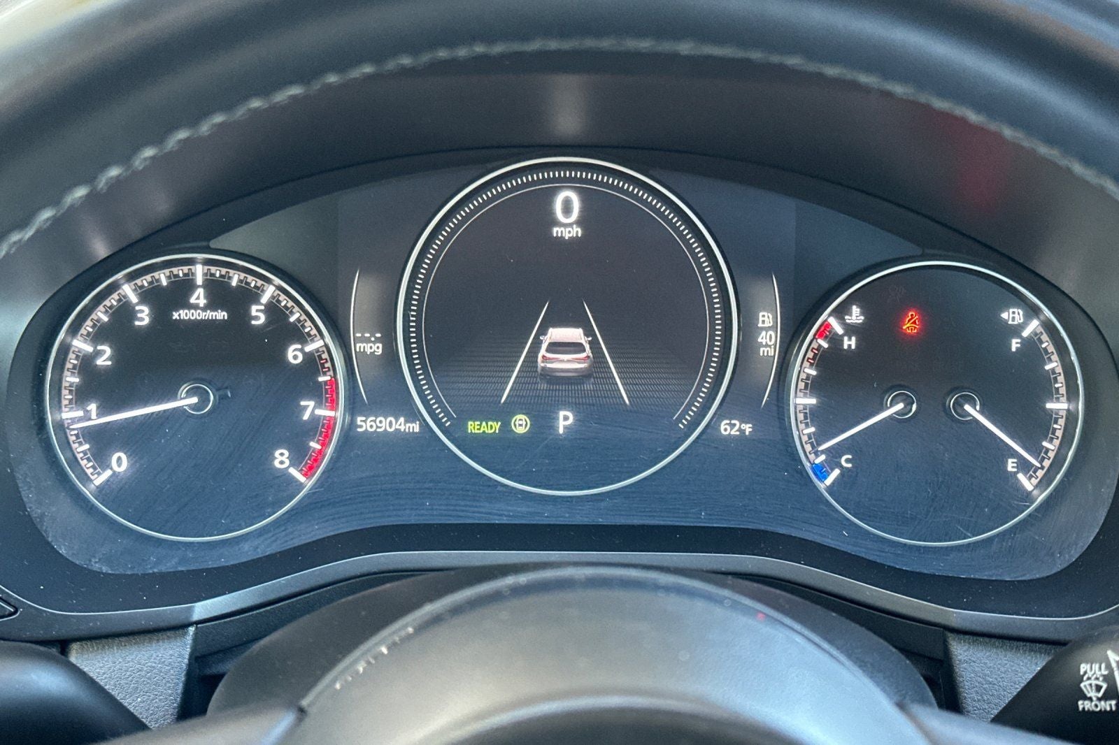 12 Speakers, 3.692 Axle Ratio, 3rd row seats: bench, 4-Wheel Disc Brakes, ABS brakes, Air Conditioning, Alloy wheels, AM/FM radio: SiriusXM, Auto High-beam Headlights, Auto-dimming Rear-View mirror, Automatic temperature control, Brake assist, Bumpers: body-color, Compass, Delay-off headlights, Driver door bin, Driver vanity mirror, Dual front impact airbags, Dual front side impact airbags, E911 Automatic Emergency Notification, Electronic Stability Control, Emergency communication system: MAZDA CONNECT, Exterior Parking Camera Rear, Four wheel independent suspension, Front anti-roll bar, Front Bucket Seats, Front Center Armrest w/Storage, Front dual zone A/C, Front reading lights, Fully automatic headlights, Garage door transmitter: HomeLink, Heads-Up Display, Heated door mirrors, Heated Front Bucket Seats, Heated front seats, Illuminated entry, Infotainment System Voice Command, Knee airbag, Leather Seat Trim, Leather Shift Knob, Leather steering wheel, Low tire pressure warning, Mazda Connected Services, Mazda Navigation System, Memory seat, Navigation system: MAZDA CONNECT, Occupant sensing airbag, Outside temperature display, Overhead airbag, Overhead console, Pandora Internet Radio Integration, Panic alarm, Passenger door bin, Passenger vanity mirror, Power door mirrors, Power driver seat, Power Liftgate, Power moonroof, Power passenger seat, Power steering, Power windows, Radio Broadcast Data System Program Information, Radio data system, Radio: AM/FM w/Bose Audio Sound System, Rain sensing wipers, Rear air conditioning, Rear anti-roll bar, Rear reading lights, Rear window defroster, Rear window wiper, Remote keyless entry, SMS Text Msg Audio Delivery & Reply, Speed control, Speed-sensing steering, Split folding rear seat, Spoiler, Steering wheel mounted audio controls, Tachometer, Telescoping steering wheel, Tilt steering wheel, Traction control, Trip computer, Turn signal indicator mirrors, Variably intermittent wipers, Wheels: 21 x 9.5J Aluminum Alloy.