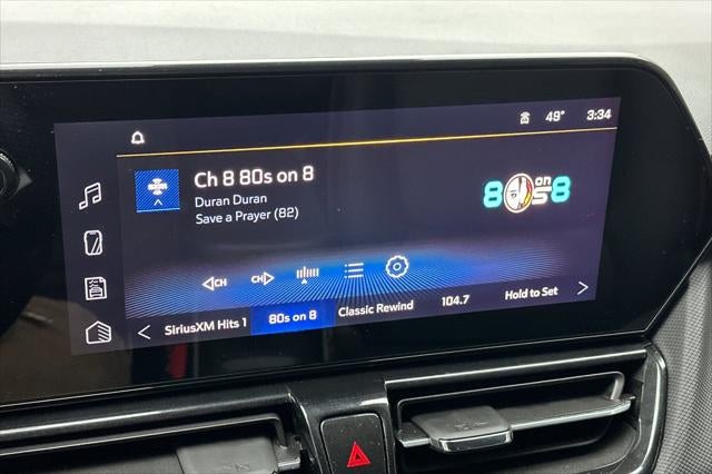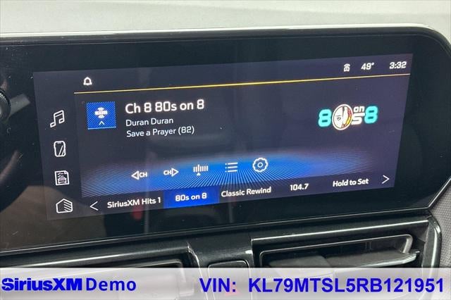 1 Type-A & 1 Type-C USB Ports, 11 Diagonal HD Color Touchscreen, 2-Way Power Driver Lumbar Seat Adjuster, 4-Way Manual Front Passenger Seat Adjuster, 4-Wheel Disc Brakes, 5.45 Final Drive Axle Ratio, 6 Speakers, 6-Speaker Audio System Feature, 8-Way Power Driver Seat Adjuster, ABS brakes, Air Conditioning, Alloy wheels, AM/FM radio: SiriusXM, Auto High-beam Headlights, Brake assist, Bumpers: body-color, Chevrolet Connected Access Capable, Compass, Delay-off headlights, Driver Confidence Package, Driver door bin, Driver vanity mirror, Dual front impact airbags, Dual front side impact airbags, Electronic Stability Control, Emergency communication system: OnStar and Chevrolet connected services capable, Evotex Seat Trim, Exterior Parking Camera Rear, Flat-Folding Front Passenger Seatback, Front anti-roll bar, Front Bucket Seats, Front Center Armrest, Front License Plate Bracket, Front reading lights, Front wheel independent suspension, Fully automatic headlights, Heated door mirrors, Heated Driver & Front Passenger Seats, Heated front seats, Heated steering wheel, Illuminated entry, Knee airbag, Lane Change Alert w/Side Blind Zone Alert, Low tire pressure warning, Mosaic Black Metallic Two-Tone Roof, Occupant sensing airbag, Overhead airbag, Overhead console, Panic alarm, Passenger door bin, Passenger vanity mirror, Power door mirrors, Power driver seat, Power steering, Power windows, Preferred Equipment Group 1RS, Radio data system, Radio: AM/FM Stereo Audio System, Rear Cross Traffic Alert, Rear Park Assist, Rear seat center armrest, Rear side impact airbag, Rear window defroster, Rear window wiper, Remote keyless entry, Ride & Handling Suspension, Security system, SiriusXM, Speed control, Split folding rear seat, Spoiler, Steering wheel mounted audio controls, Tachometer, Telescoping steering wheel, Tilt steering wheel, Traction control, Trip computer, Variably intermittent wipers, Wheels: 19 High Gloss Black Machined Aluminum, Wireless Apple CarPlay/Android Auto.