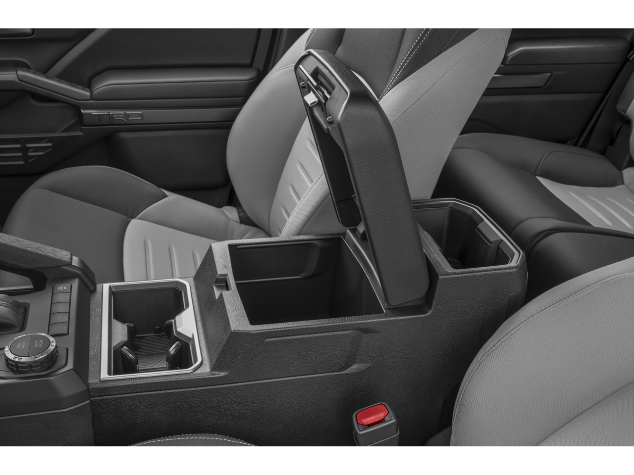 4WD, 4-Wheel Disc Brakes, 6 Speakers, ABS brakes, Air Conditioning, Alloy wheels, AM/FM radio: SiriusXM, Anti-whiplash front head restraints, Apple CarPlay/Android Auto, Auto High-beam Headlights, Auto-dimming Rear-View mirror, Automatic temperature control, Brake assist, Bumpers: body-color, Driver door bin, Driver vanity mirror, Dual front impact airbags, Dual front side impact airbags, Electronic Stability Control, Emergency communication system: Safety Connect (1-year trial), Exterior Parking Camera Rear, Fabric Seat Trim (FE), Four wheel independent suspension, Front anti-roll bar, Front Bucket Seats, Front Center Armrest, Front fog lights, Front reading lights, Fully automatic headlights, Heated door mirrors, Illuminated entry, Knee airbag, Leather Shift Knob, Leather steering wheel, Low tire pressure warning, Occupant sensing airbag, Outside temperature display, Overhead airbag, Overhead console, Panic alarm, Passenger door bin, Passenger vanity mirror, Power door mirrors, Power steering, Power windows, Radio: 8 Toyota Audio Multimedia, Rear step bumper, Rear window defroster, Remote keyless entry, Security system, Speed control, Speed-sensing steering, Split folding rear seat, Steering wheel mounted audio controls, Tachometer, Telescoping steering wheel, Tilt steering wheel, Traction control, Trip computer, Turn signal indicator mirrors, Variably intermittent wipers, Wheels: 18 TRD Sport Alloy, 4WD.