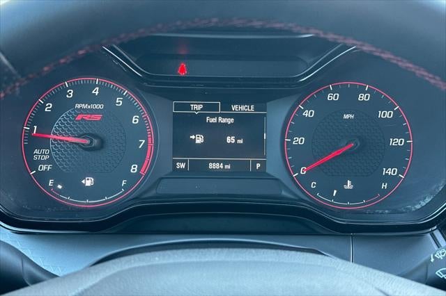 2-Way Adjustable Front Head Restraints, 3.50 Final Drive Axle Ratio, 4 Speakers, 4-Speaker Audio System Feature, 4-Way Manual Front Passenger Seat Adjuster, 4-Wheel Disc Brakes, 6-Way Manual Driver Seat Adjuster, ABS brakes, Air Conditioning, Alloy wheels, AM/FM radio: SiriusXM, Auto High-beam Headlights, Brake assist, Bumpers: body-color, Cloth Seat Trim, Compass, Delay-off headlights, Driver Confidence Package, Driver door bin, Driver vanity mirror, Dual front impact airbags, Dual front side impact airbags, Electronic Stability Control, Emergency communication system: OnStar One Essentials, Exterior Parking Camera Rear, Front anti-roll bar, Front Bucket Seats, Front Center Armrest, Front reading lights, Front wheel independent suspension, Fully automatic headlights, Heated door mirrors, Heated Driver and Front Passenger Seats, Heated front seats, Heated steering wheel, Illuminated entry, Lane Change Alert with Side Blind Zone Alert, Leather steering wheel, License Plate Front Mounting Package, Low tire pressure warning, Occupant sensing airbag, Outside temperature display, Overhead airbag, Overhead console, Panic alarm, Passenger door bin, Passenger vanity mirror, Power door mirrors, Power steering, Power windows, Preferred Equipment Group 1RS, Premium audio system: Chevrolet Infotainment 3, Radio data system, Radio: Chevrolet Infotainment 3 System with AM/FM, Rear Cross-Traffic Alert, Rear Park Assist, Rear window defroster, Rear window wiper, Remote keyless entry, Security system, SiriusXM Trial Subscription, Speed control, Split folding rear seat, Spoiler, Sport steering wheel, Steering wheel mounted audio controls, Tachometer, Telescoping steering wheel, Tilt steering wheel, Traction control, Trip computer, Variably intermittent wipers, Wheels: 18 Black-Painted Machined Aluminum.