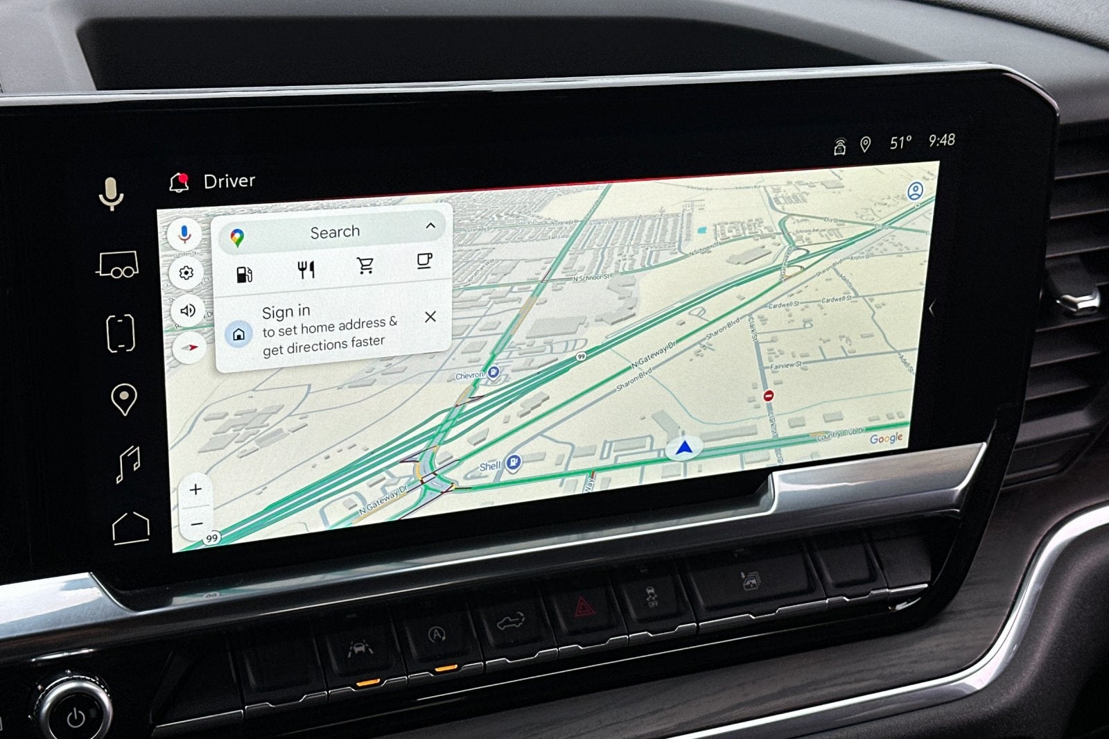 10-Speed Automatic, Black Leather, 10-Way Power Driver Seat Adjuster w/Lumbar, 10-Way Power Passenger Seat Adjuster w/Lumbar, 120-Volt Bed Mounted Power Outlet, 120-Volt Interior Power Outlet, 170 Amp Alternator, 2 Charge/Data USB Ports, 2 Type-C Charge-Only Rear USB Ports, 3.23 Rear Axle Ratio, 4-Wheel Disc Brakes, 6 Speakers, 6-Speaker Audio System Feature, ABS brakes, Air Conditioning, Alloy wheels, AM/FM radio: SiriusXM with 360L, Apple CarPlay/Android Auto, Auto High-beam Headlights, Auto-dimming door mirrors, Auto-dimming Rear-View mirror, Auto-Locking Rear Differential, Automatic Emergency Braking, Automatic temperature control, Auxiliary External Transmission Oil Cooler, Brake assist, Buckle to Drive, Bumpers: chrome, Chrome Header & Chrome Grille Insert Bars, Color-Keyed Carpeting Floor Covering, Compass, Deep-Tinted Glass, Delay-off headlights, Driver door bin, Driver Memory, Driver vanity mirror, Dual front impact airbags, Dual front side impact airbags, Electric Rear-Window Defogger, Electronic Stability Control, Emergency communication system: OnStar, Following Distance Indicator, Forward Collision Alert, Front 40/20/40 Split-Bench Seat, Front anti-roll bar, Front Center Armrest w/Storage, Front dual zone A/C, Front fog lights, Front Frame-Mounted Black Recovery Hooks, Front License Plate Kit, Front Pedestrian Braking, Front Rain-Sensing Wipers, Front reading lights, Front wheel independent suspension, Fully automatic headlights, HD Rear Vision Camera, Heated door mirrors, Heated Driver & Front Outboard Passenger Seating, Heated front seats, Heated steering wheel, Hitch Guidance, Illuminated entry, Integrated Trailer Brake Controller, IntelliBeam Automatic High Beam On/Off, Keyless Open & Start, Lane Keep Assist w/Lane Departure Warning, LED Cargo Area Lighting, Low tire pressure warning, Manual Tilt-Wheel & Telescoping Steering Column, Memory seat, Navigation System, Occupant sensing airbag, OnStar Services Capable, Outside temperature display, Overhead airbag, Overhead console, Panic alarm, Passenger door bin, Passenger vanity mirror, Perf Leather-Appointed Front Outboard Seat Trim, Perimeter Lighting, Power Door Locks, Power door mirrors, Power driver seat, Power Front Passenger Windows w/Express Up/Down, Power Front Windows w/Driver Express Up/Down, Power passenger seat, Power Rear Windows w/Express Down, Power steering, Power windows, Preferred Equipment Group 4SA, Push Button Start, Radio data system, Radio: Premium GMC Infotainment Audio System, Rain sensing wipers, Rear reading lights, Rear seat center armrest, Rear step bumper, Rear Wheelhouse Liners, Rear window defroster, Remote keyless entry, Remote Vehicle Starter System, Security system, SiriusXM w/360L Trial Subscription, Speed control, Speed-sensing steering, Split folding rear seat, Standard Suspension Package, Steering Wheel Audio Controls, Steering wheel mounted audio controls, Tachometer, Telescoping steering wheel, Theft Deterrent System (Unauthorized Entry), Tilt steering wheel, Traction control, Trailering Package, Trip computer, Variably intermittent wipers, Voltmeter, Wheels: 18 x 8.5 6-Spoke Machined Aluminum, Wi-Fi Hotspot Capable, Wireless Apple CarPlay/Wireless Android Auto, 10-Speed Automatic, Black Leather.