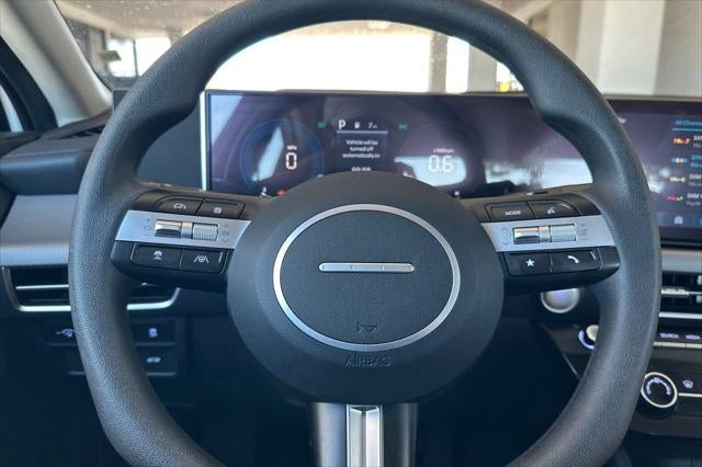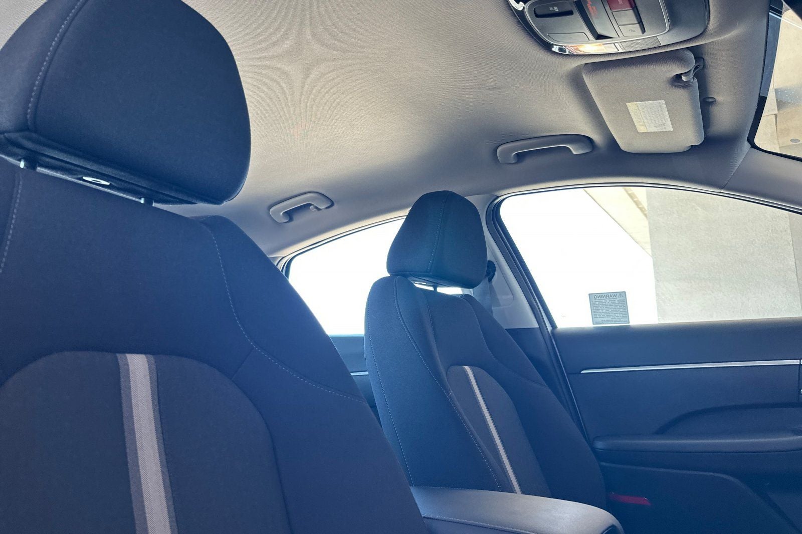 Black Cloth, 16 x 6.5J Aluminum Alloy Wheels, 4-Wheel Disc Brakes, 6 Speakers, ABS brakes, Air Conditioning, Alloy wheels, AM/FM radio: SiriusXM, Apple CarPlay & Android Auto, Auto High-beam Headlights, Brake assist, Bumpers: body-color, Cargo Net, Cargo Tray, Carpeted Floor Mats, Cloth Seating Surfaces, Delay-off headlights, Driver door bin, Driver vanity mirror, Dual front impact airbags, Dual front side impact airbags, Electronic Stability Control, Emergency communication system: Bluelink+, Exterior Parking Camera Rear, First Aid Kit, Four wheel independent suspension, Front anti-roll bar, Front Bucket Seats, Front Center Armrest, Front reading lights, Fully automatic headlights, Illuminated entry, Knee airbag, Low tire pressure warning, Occupant sensing airbag, Option Group 01, Outside temperature display, Overhead airbag, Overhead console, Panic alarm, Passenger door bin, Passenger vanity mirror, Power door mirrors, Power steering, Power windows, Radio data system, Radio: AM/FM/HD/SiriusXM, Rear anti-roll bar, Rear Bumper Applique, Rear side impact airbag, Rear window defroster, Remote keyless entry, Security system, Severe Weather Kit, Speed control, Speed-sensing steering, Speed-Sensitive Wipers, Split folding rear seat, Steering wheel mounted audio controls, Tachometer, Telescoping steering wheel, Tilt steering wheel, Traction control, Trip computer, Variably intermittent wipers, Wheel Locks, Black Cloth.